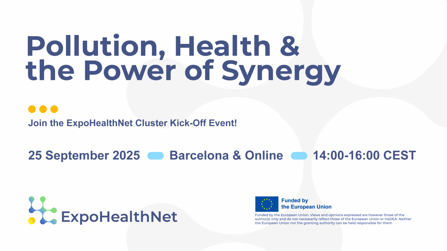 We are pleased to invite you to the ExpoHealthNet Kick-off Event, taking place on 25 September 2025 from 14:00 to 16:00 CEST in Barcelona and online. This event marks the launch of ExpoHealthNet, a new Horizon Europe cluster uniting 7 cutting-edge projects investigating the complex links between environmental stressors and the development of non-communicable diseases… Continue reading Cluster Meeting: ExpoHealthNet Kick-off Event